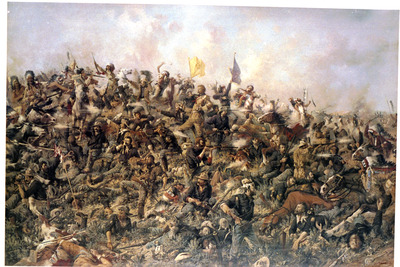 Custer's Last Stand was an 1899 oil on canvas painting by Edgar Samuel Paxson. The painting depicts the June 25-26, 1876 Battle of the Little Bighorn in which LTC George Armstrong Custer and his regiment were defeated by Lakota Sioux, Northern Cheyenne, and Arapaho warriors.