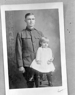 A family portrait of a man and child. They are John Robert Simmonds with his daughter Genelle Simmonds Dasinger. (circa 1914-1918) [courtesy of Harold Dasinger]