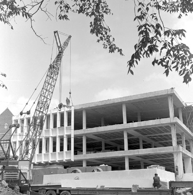 Finished in 1969, this building was used by Jacksonville State University as the student commons building. Shown is construction on the building in 1968. Today the building is known as the TMB, or Theron Montgomery Building. (circa 1968)