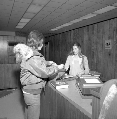 Students pay tuition inside the business office at Jacksonville State University. (circa January 26, 1976)