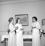 The Alabama Federation of Women's Clubs held its 82nd annual convention May 12-14, 1977 at Jacksonville State University. Shown guests gather inside the International House. (circa May 12, 1977)