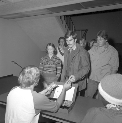 The Cinematic Arts Council planned movies to be shown in the Student Commons Auditorium at Jacksonville State University during the 1976-1977 school year. Shown students pay for admission to an event.