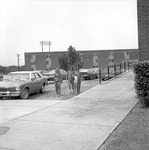 The Physical Education Department at Jacksonville State University sponsored a gymnastics clinic in June 1977 in the old Stephenson Gym. Gymnastics coach Robert Dillard gave instruction to participants during the clinic. Shown participants walk outside on campus. (circa June 20, 1977)