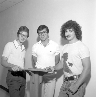 These three students were officers of the Student Government Association at Jacksonville State University in 1976-1977. Identified is Van Hall, center, the SGA treasurer. (circa 1976)