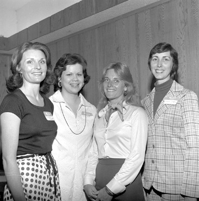 These four women may have been members of the Jacksonville State University Faculty Wives Club in 1976-1977. Identified are Sheila Gilbert, Lynne Smith, Sharon Dempsey.