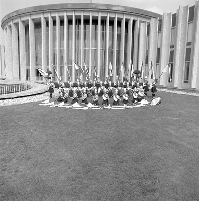 These students were members of the Marching Southerners color guard section at Jacksonville State University in 1976-1977. Shown are Mary Lynn Rose, Cindy Coshatt, Trudy Warren, Melanie Adams, Cindy Engelman, Sandy Engelman, Jane Ridenhour, Vickie Turkett, Laura Earnhart, Mary Wilson, Ann Mettle, Kay Bolick, Dee Dee Nolin, Marie Wallis, Joni Berrier, Kathy Hudson, Cindy Wallace, Athena Willingham, Melanie Harris, Denise Fairchild, Carol Chandler, Beverly Marshall, Judy Taylor, Sherry Hurst, Denise Dyer.
