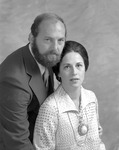 Mr. and Mrs. Ken Mounts pose together in studio for a portrait taken at Jacksonville State University in 1976.