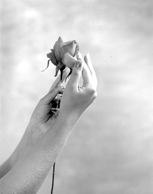 A rose is held. This was an image that served as the cover or lead page to the personalities section within the 1977 Mimosa, the Jacksonville State University annual yearbook.
