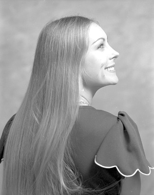 This unidentified female individual poses in studio for portraits taken at Jacksonville State University in 1976-1977.