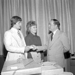 Dr. Theron Montgomery, Vice President of Academic Affairs, presents a gift during an awards banquet at Jacksonville State University in 1976-1977.