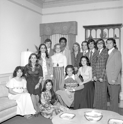 These foreign students were members of the International House program at Jacksonville State University in 1967-1977. Shown are Masako Kinoshita, Elisabeth Sturm, Thao Nguyen, Deborah Campbell, Sonia de Moraes, Jasmin Eslait, Pierre Delhaise, Sinikka Makela, Rene Morris, Flemming Berg, John Knoke, Alberto Ruiz, Cuauhtemoc Zuniga, Salomon Cardenas. (circa March 25, 1977)