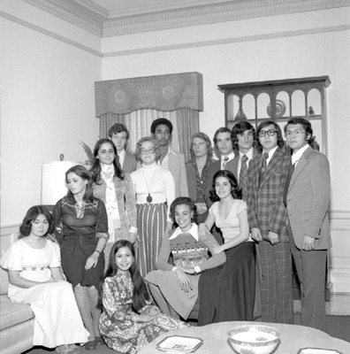 These foreign students were members of the International House program at Jacksonville State University in 1967-1977. Shown are Masako Kinoshita, Elisabeth Sturm, Thao Nguyen, Deborah Campbell, Sonia de Moraes, Jasmin Eslait, Pierre Delhaise, Sinikka Makela, Rene Morris, Flemming Berg, John Knoke, Alberto Ruiz, Cuauhtemoc Zuniga, Salomon Cardenas. (circa March 25, 1977)