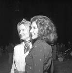 A homecoming pep rally and bonfire was held October 28, 1976 at Jacksonville State University in which Cathy Hammett was crowned homecoming queen. Shown are Cathy Hammett, left, with first alternate Teresa Cheatham, right.