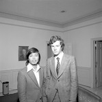 International House program students stand inside the International House at Jacksonville State University in 1975-1976. Shown are Wai-Man Siu (Hong Kong) and Pierre Delhaise (Belgium). (circa 1975)