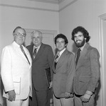 Luis Generali and John Edwards were International House Program students at Jacksonville State University in 1975-1976. They stand inside the International House with President Ernest Stone and a guest during a special event. (circa 1976)