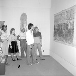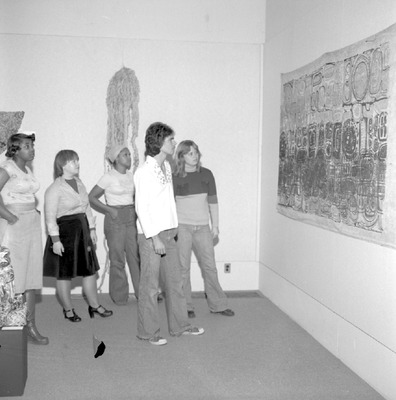 Guests enjoy art during the Traveling Arts and Crafts Show in the Hammond Hall Gallery at Jacksonville State University in 1977-1978.