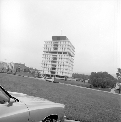 Jacksonville State University's Houston Cole Library was built in 1972. The new library was named after Houston Cole, University President from 1942-1971. Shown is an exterior view of the building from across Pelham Road and the front lawn.