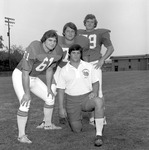 Jacksonville State University offensive line coach Greg Mantooth poses alongside 1977 football players Mark Huskey, Randy Ragsdale, Mark Cooley.