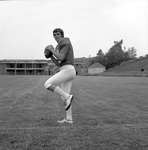 Bobby Ray Green was a member of the football team at Jacksonville State University in 1977-1978. Shown in uniform the quarterback poses on the football field.