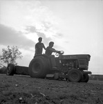 Ricky Shrewsbury and Gary White were football trainers at Jacksonville State University in 1977-1978. Shown they ride a tractor.