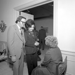 The United Nation's Day Tea is celebrated annually at the International House. Jacksonville State University International House students living in the House open their home to visitors and exchange students dress in native costumes. Shown are guests inside the house during the event held October 23, 1977.