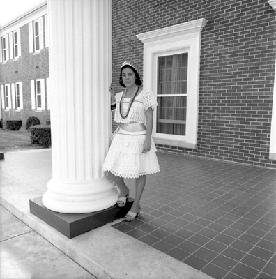 Sonia de Moraes was a student at Jacksonville State University and a member of the International House Program from Rio de Janeiro, Brazil. She was awarded The Alabama Federation of Women's Clubs scholarship for 1977-1978 by Mrs. Robert K. Wilson, president. Shown she stands outside the International House, possibly during the annual UN Day Tea event held October 23, 1977.