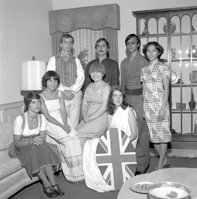 These students were members of the International House program at Jacksonville State University in 1977-1978. Shown are Dorothee Lobbermann (Germany), Gianna Boido (Italy), Monique Gooren (Holland), Heather Maddever (England), Michael Ohman (Sweden), Jean-Marc Desboudarad (France), Yasuyuki Otsuka (Japan), Gloria Feng (Taiwan). (circa December 3, 1977)