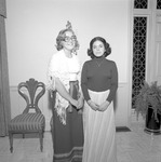 International House program students stand inside the International House at Jacksonville State University in 1977-1978. Identified students are Sinikka Makela and Sonia de Moraes. (circa 1978)