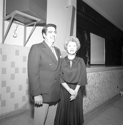 The outstanding athletes of the 1977 Gamecock football team were honored during the football awards banquet held January 20, 1978 in the Leone Cole Auditorium at Jacksonville State University. Shown are two attendees. At left is Jerry Cole, Athletic Director.