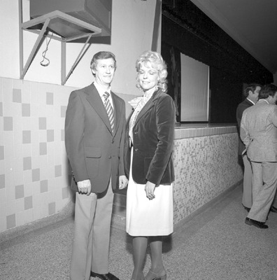 The outstanding athletes of the 1977 Gamecock football team were honored during the football awards banquet held January 20, 1978 in the Leone Cole Auditorium at Jacksonville State University. Shown are two attendees. At left is Rudy Abbott, baseball coach.