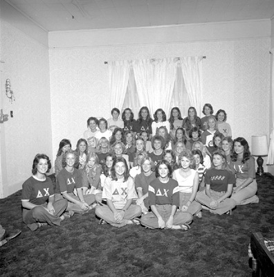 These students were members of Delta Chi at Jacksonville State University in 1977-1978. Brothers were Charles Becraft, Tim Bridges, Jim Bohannon, Mike Burnthall, Kenneth Chandler, Mark Cumbaa, David Driscoll, John Fargason, Bobby Franklin, Gary Gant, Brian Hall, Sam Hall, Van Hall, Mark Huskey, Bill Johnson, Steve Jones, Tony Killen, Jason Klonowski, Jim Lucas, Mike Lucas, Raymond Low, Richard Mann, Jim Martin, Moochie Mathis, Rusty McGibboney, Winfiled Moon Jr., Danile Mozingo, Gus Pantazis, Scott Selman, Cole Shriner, David Smith, Ralph Stone, Dale Wren. Pledges were Stephen Barrow, Bob Beard, Bill Booth, Jay Brazelton, Ken Brown, Frank Harris, Chris Hays, Clark Hereford, Marty Leak, Mark Melton, Doug Rasberry, Rick Reed, Jeff Striplin, Renea Tolleson, Steve Traylor, Ricky Yell, Rodeny Moak, Terry Rogers. Chi Delphia were Vickie Adams, Arlene Avery, Sandy Barker, Candy Barr, Lisa Brooks, Susan Brooks, Cindi Brown, Teresa Brown, Lucy Carmonosino, Candy Cason, Michelle Chaltain, Pat Cooper, Connie Cornelius, Ellen Denning, Dean Deupree, Michelle Donnadieu, Sharly Donnadieu, Donna Duke, Tammy Ellison, Susan Gerstlauer, Ginga Hardenbergh, Debra Harkey, Pam Hill, Denise Hulsey, Susan Keith, Linda Lewis, Monica Lewis, Leslie Livingston, Jenai Mazer, Becky McLeroy, Beth Meadows, Judy Meadows, Sabrina Oden, Ginger Owen, Denisa Patton, Vickie Salter, Maria Sawanda, Judith Spidle, Linda Stone, Dorothy Tsimpides, B.B. Levine, Dawn Hall, Julie White, Robin Whitehead, Joanie Wingersahn, Felicia Worthy, Jan Zbinden.