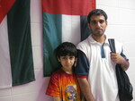 The English Language Institute prepared non-native English speakers for university study in the United States through immersive courses in the English language and American history and culture. Shown is a new student participant standing in front of the flag of the United Arab Emirates, possibly with his son. (circa July 24, 2009)