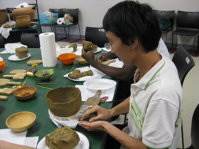 The English Language Institute prepared non-native English speakers for university study in the United States through immersive courses in the English language and American history and culture. Participants visited the Little River Canyon Center in Fort Payne, AL on July 17, 2010. Shown students enjoy a pottery class.