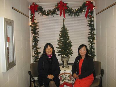 The English Language Institute prepared non-native English speakers for university study in the United States through immersive courses in the English language and American history and culture. Participants and guests gathered for an ELI Christmas Party inside Salls Hall in 2010.