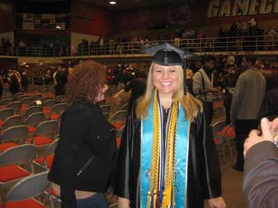 The English Language Institute prepared non-native English speakers for university study in the United States through immersive courses in the English language and American history and culture. Graduation exercises for the College of Arts and Sciences and the College of Commerce and Business Administration at Jacksonville State University were held December 17, 2010 in the Pete Mathews Coliseum. Shown is a graduating student.