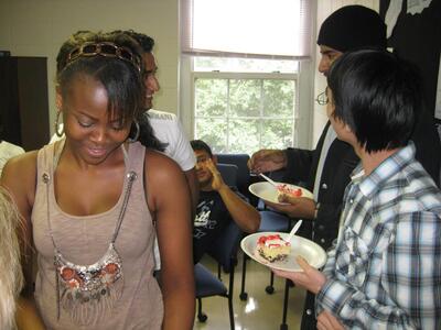 The English Language Institute prepared non-native English speakers for university study in the United States through immersive courses in the English language and American history and culture. Participants and guests gathered for an ELI Welcome Party inside Salls Hall in 2011. (circa 2011)