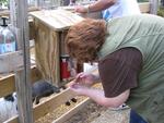 The English Language Institute prepared non-native English speakers for university study in the United States through immersive courses in the English language and American history and culture. ELI participants visited DeSoto Caverns in Childersburg, AL. Dr. Linda Yost, ELI instructor, retrieves goat food from a dispenser. (circa 2011)