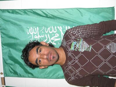 The English Language Institute prepared non-native English speakers for university study in the United States through immersive courses in the English language and American history and culture. Shown is a student participant in front of the Saudi Arabia flag. (circa 2011)