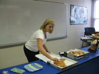 The English Language Institute prepared non-native English speakers for university study in the United States through immersive courses in the English language and American history and culture. Participants and guests gathered for an ELI Welcome Party inside Salls Hall on July 13, 2011. Shown is Linda Adams, ELI employee.