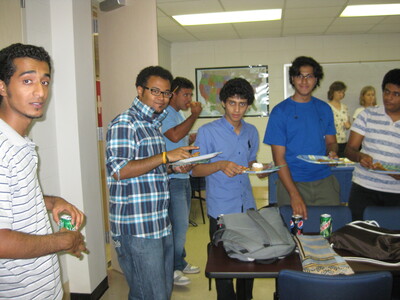 The English Language Institute prepared non-native English speakers for university study in the United States through immersive courses in the English language and American history and culture. Participants and guests gathered for an ELI Welcome Party inside Salls Hall on July 13, 2011.