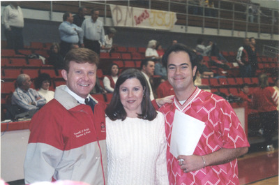 Dr. Kenneth G. Bodiford was the Director of Bands at Jacksonville State University from 1994-2025. Identified standing with him inside the Pete Mathews Coliseum is Mark Fifer, a JSU Master of Music Education graduate. (circa 1999)
