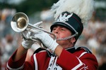 The Jacksonville State University Marching Southerners perform during a Fall 2000 performance, possibly a band exhibition performance at Tuscaloosa County High School in Northport, AL. The 2000 show title was "A Night in Birdland." Opener was "Birdland," the ballerina tune was "Night in Tunisia/Harlem Nocturne," and the closer was "Strawberry Soup." The band was under the direction of Kenneth G. Bodiford. (before October 2000)