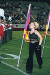 The Jacksonville State University Marching Southerners perform during a Fall 2000 performance, possibly the September 21 football game held in the Paul Snow Stadium in Jacksonville, AL against Samford. The 2000 show title was "A Night in Birdland." Opener was "Birdland," the ballerina tune was "Night in Tunisia/Harlem Nocturne," and the closer was "Strawberry Soup." The band was under the direction of Kenneth G. Bodiford. (circa September 21, 2000)