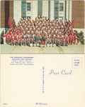 Postcard depicting the Jacksonville State College Marching Southerners band outside a campus building. Drum Major was Homer Smith and featured twirler was Judy Holland. The card notes "'The Marching Southerners' Jacksonville State University; David L. Walters: Director; Carl Anderson: Ass't. Director; Zenobia King Hill: Choreographer." (circa 1970)