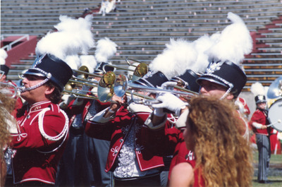 The Jacksonville State University Marching Southerners perform during a 1991 performance in the A. B. Sonny Martin Stadium at Lowndes High School in Valdosta, GA. The 1991 show was titled "West Side Story." The band was under the direction of Dr. Scott McBride and the field direction of drum majors Keith Casey and Marcus LeGear. (circa 1991)