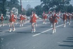 The Jacksonville State College (now Jacksonville State University) Southerners Marching ballerinas are shown in uniform during a parade, possibly the homecoming parade held October 6, 1962. (circa October 6, 1962) [courtesy of Joe David Walters]