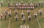 The Jacksonville State University Marching Southerners perform on the field during a 1993 football game performance in the Paul Snow Stadium in Jacksonville, AL. The band was under the direction of Dr. Scott McBride and the field direction of drum majors Keith Casey and Marcus LeGear. (circa Fall 1993)