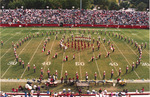 The Jacksonville State University Marching Southerners perform on the field during a 1993 football game performance in the Paul Snow Stadium in Jacksonville, AL. The band was under the direction of Dr. Scott McBride and the field direction of drum majors Keith Casey and Marcus LeGear. (circa Fall 1993)