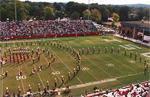 The Jacksonville State University Marching Southerners perform on the field during a 1993 football game performance in the Paul Snow Stadium in Jacksonville, AL. The band was under the direction of Dr. Scott McBride and the field direction of drum majors Keith Casey and Marcus LeGear. (circa Fall 1993)