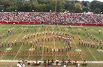 The Jacksonville State University Marching Southerners perform on the field during a 1993 football game performance in the Paul Snow Stadium in Jacksonville, AL. The band was under the direction of Dr. Scott McBride and the field direction of drum majors Keith Casey and Marcus LeGear. (circa Fall 1993)